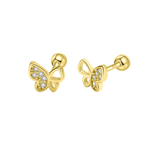 AROS MARIPOSA ALA CIRCÓN CHAPADO ORO TORNILLO ROSCO