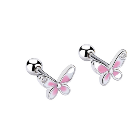 AROS MARIPOSA ESMALTE ROSA TORNILLO ROSCO